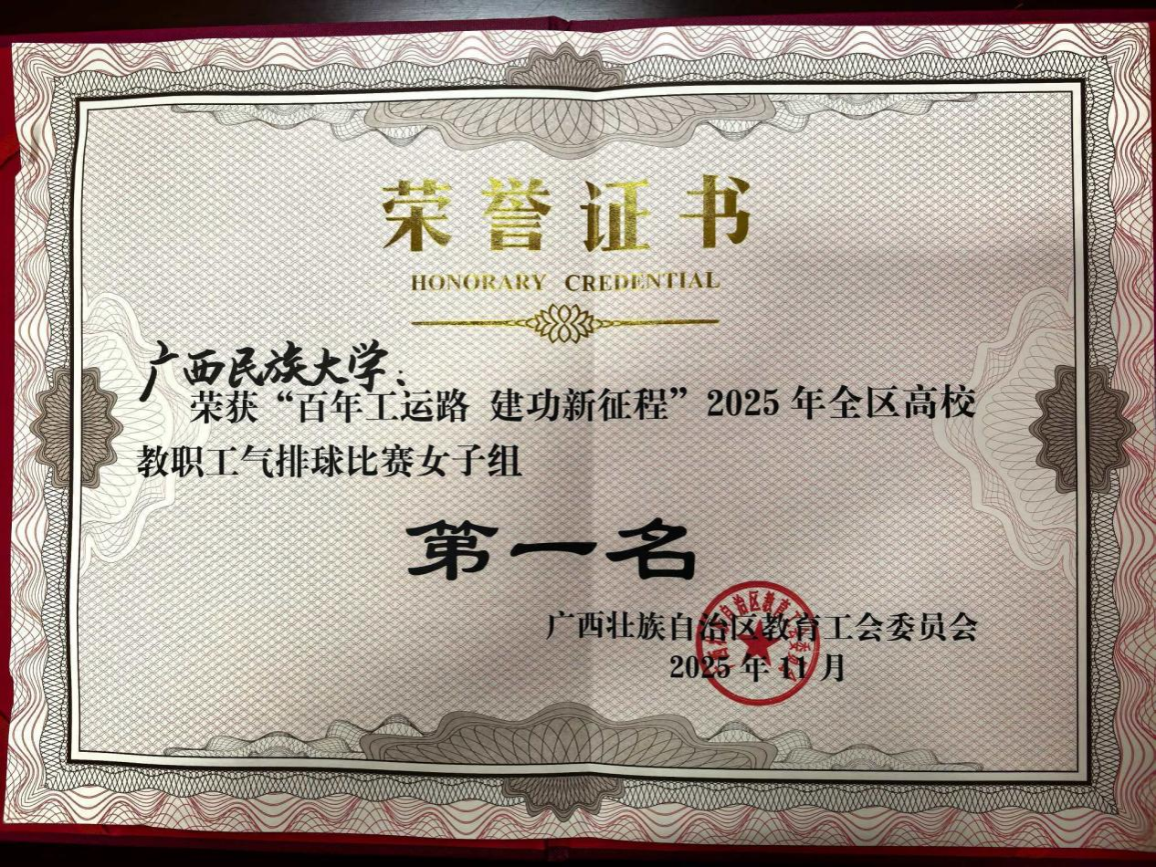 11月9日,“百年工运路 建功新征程”2025年全区高校教职工气排球比赛在广西体育中心圆满落幕。本次比赛共有来自全区52所高校的48支男队、47支女队、18支工会专职干部队,约1100名教职工参加比赛。广西民族大学教职工在本次比赛上表现出色,获得女子组冠军和专职工会干部组第五名的佳绩。