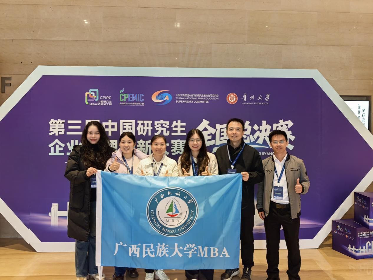 11月7日—11月9日,第三届中国研究生企业管理创新大赛全国总决赛在贵州贵阳市中国-东盟教育交流周永久会址举办。广西民族大学在本次全国总决赛中获一等奖1项,二等奖1项,再创历史佳绩。