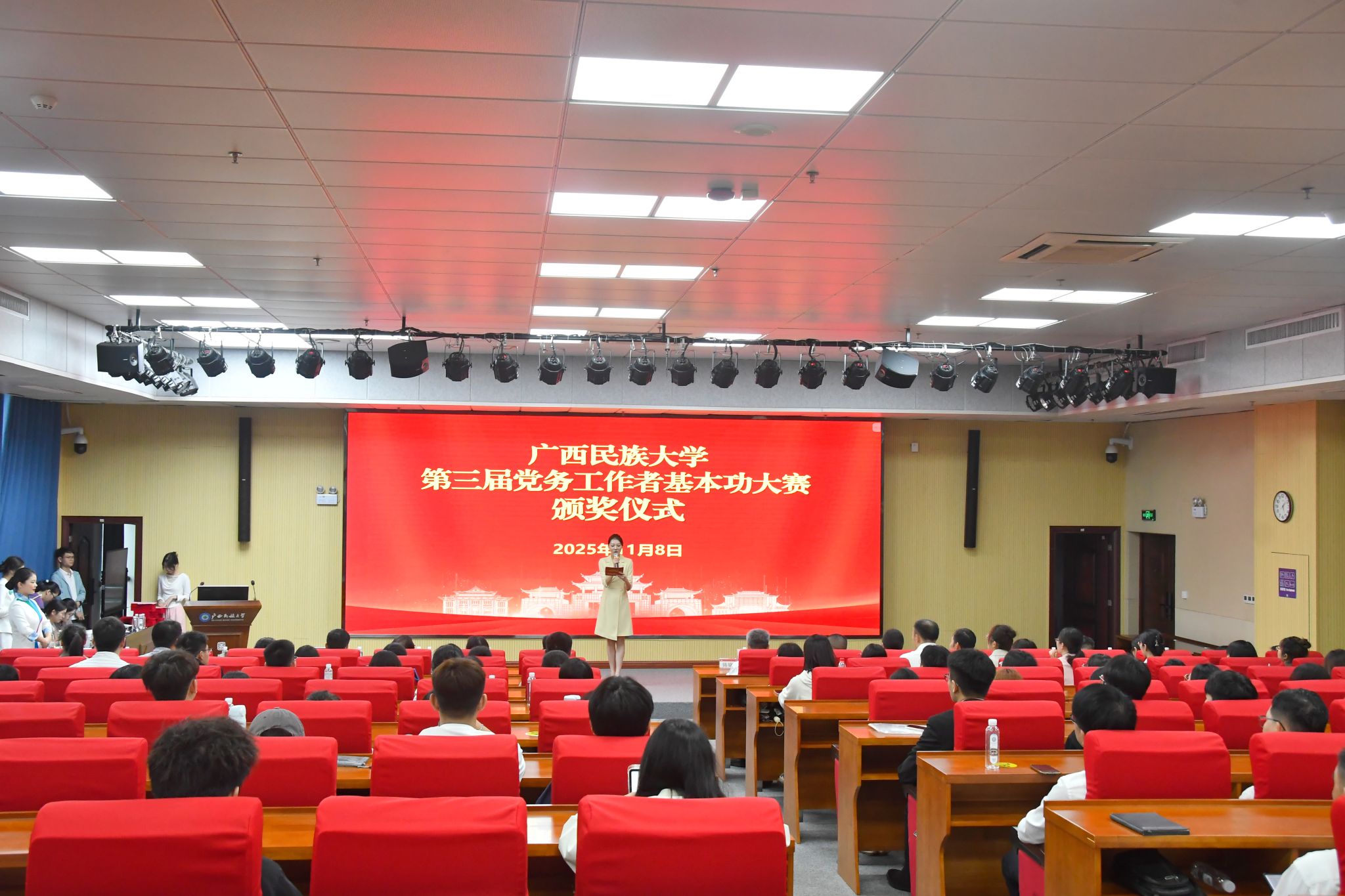 【大学生通讯社报道】11月7日至8日,广西民族大学第三届党务工作者基本功大赛在相思湖校区举行。学校党委副书记陈铭彬出席颁奖仪式并为获奖选手颁奖,学校党委副书记邓国彬到场指导比赛,学校有关职能部门和院级党委负责人担任评委,各院级党委党员代表到场观摩。