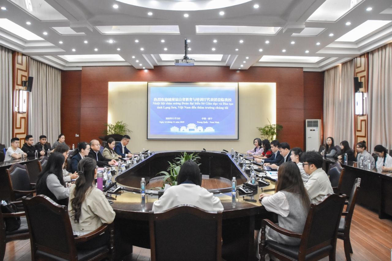 姜明国对越南谅山省教育与培育厅代表团的来访表示欢迎,简要介绍了学校办学发展历史。他表示,今年是中越建交75周年,中越命运共同体建设迎来新的发展契机,广西民族大学重视与越南谅山省有关机构及教育的合作交流,期待双方充分发挥各自优势,深化拓展合作领域,积极探索教育资源共享与联合培训项目等更广阔的合作空间。