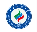 学校徽志使用字母“M”(代表“民”)和“Z”(代表“族”)构成升腾的红、蓝、绿三层火焰,下方有“1952”字样,代表学校建校时间。三条“Z”形火焰与“1952”结合起来,象征着广西民族大学老、中、青三代教育工作者从1952年学校创办之初,承前启后、众志成城、追求不止,推动学校的办学事业欣欣向荣,蒸蒸日上。浅绿的底色,象征绿色校园、和谐校园、平安校园。外环上方“广西民族大学”是郭沫若先生的手迹,下方是“广西民族大学”的英文大写。